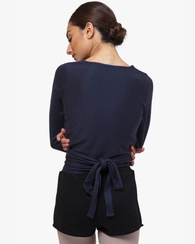 Women Repetto Midnight Blue Knitted Wrap-Over Clothing XDH8H0515