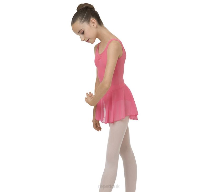 This Leotard Is Specifically Developed For The First Years Of Dance Practice. The Body Maintain Is Perfectly Respected Thanks To The Large Straps. The Gathered Neckline Adjustable With A Small Internal Satin Ribbon Brings A Fancy Touch To The Leotard. The Chiffon Skirt Gives A Glimpse Of The Movements. This Style Is Lined In The Front.