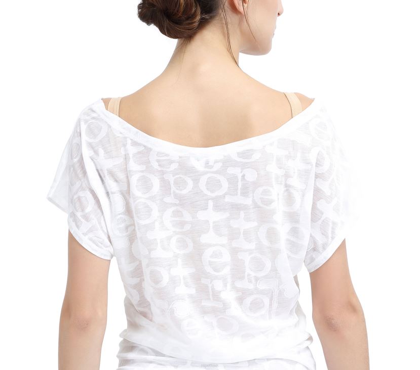 Details: Short Sleeved T-shirt. Front And Back Dancer Neckline. Fitted On The Hips. Devore Fabric. Opaque Repetto Logo On Transparent Mesh.